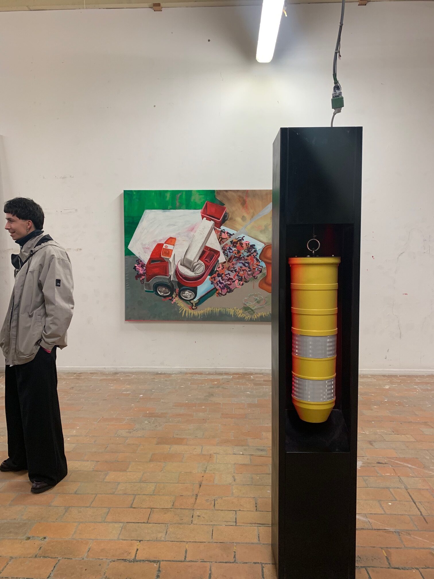 PAC mij vast. Een samenwerking tussen Charlotte Bracke en Zoë Dejonghe.Een samenwerking tussen hun, hun werken en de toeschouwer. In ‘pac mij vast’ nodigen ze de toeschouwer en zichzelf uit de dialoog/relatie aan te gaan tussen hun bijde werken. Door hun werken bij mekaar te gaan voegen op een speelse manier, bevragen ze niet alleen de relatie tegen over mekaars werken, maar ook hoe de toeschouwer kan betrokken worden.